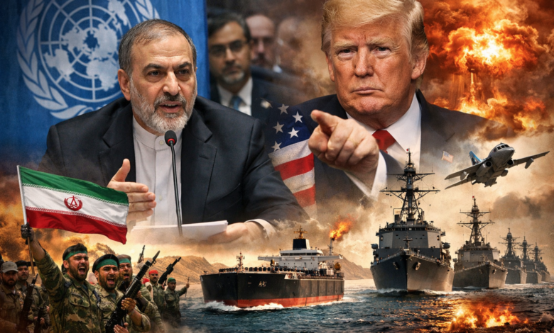 Durante sessão do Conselho de Segurança, que discutia a situação no Estreito de Ormuz, Iravani pediu que a comunidade internacional condene a retórica de Washington. “O Irã não ficará de braços cruzados diante de crimes de guerra tão graves. Exercerá seu direito de autodefesa e tomará medidas proporcionais”, declarou.