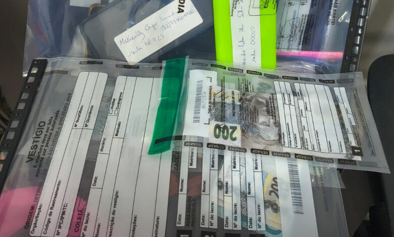 Durante a ação, a Polícia Civil apreendeu R$ 5,4 mil em espécie, além de diversas notas de R$ 200 e R$ 100 falsificadas e produtos adquiridos ilegalmente.