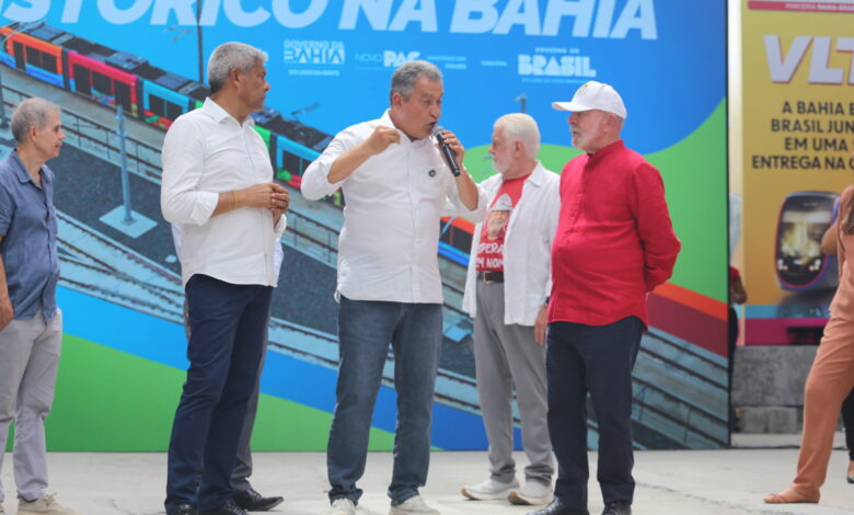 Rui Costa elogia Wagner e Jerônimo durante visita de Lula às obras do VLT em Salvador
